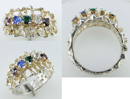 BRASS Purple/LBlue/Green/White/Red Nugget Ring 8.5